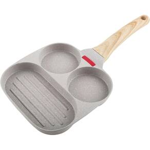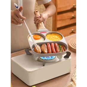 Frigideira antiaderente 3 seções com divisão ovos, pão, filé Frigideira antiaderente para ovos, panquecas, hamburguer, pão, filé com 3 furos. Frigideira de ovo de 3 furos antiaderente compatível com todas as fontes de calor Frigideira antiaderente para ovos - frigideira quadrada grelhada com 3 seções frigideira dividida para pão A panela de ovo frito permite que você cozinhe 3 alimentos ainda mais diferentes simultaneamente, em vez de ter que limpá-lo toda vez que grelhar um. É fácil para você fritar bacon, ovos, panquecas e bife separadamente.