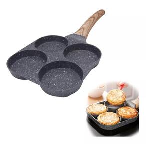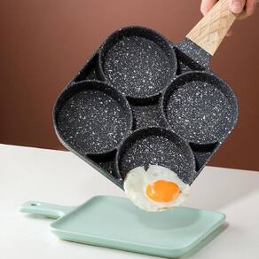 Essa frigideira possui 4 divisórias que permitem preparar ovos ou pequenos alimentos de uma só vez, economizando tempo e esforço. Com ela, você pode preparar diversos pratos ao mesmo tempo, como omeletes, hambúrgueres, panquecas e muito mais.