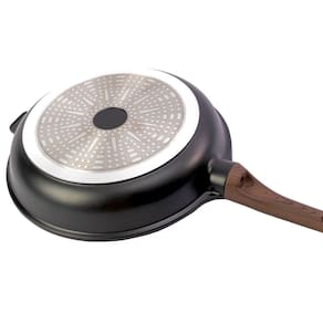 A frigideira antiaderente, também conhecida como teflon, é revestida com uma substância capaz de repelir certas substâncias. Por isso, a comida não gruda nela. É resistente a altas temperaturas e a arranhões. As frigideiras em alumínio antiaderente contam com uma camada que cobre o seu material e evita que o alimento grude em seu interior. Dessa forma, contribuem para uma culinária saudável, dispensando o uso excessivo de gordura ou óleos vegetais. Para quem gosta de um peixe ou filé de frango grelhado, ou não dispensa uma omelete delicioso, não pode deixar de ter uma em sua cozinha. Pode ser utilizadas com os demais fogões: Indução, Elétrico, Gás e Vitrocerâmico. Livre de PFOA.