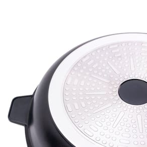 A frigideira antiaderente, também conhecida como teflon, é revestida com uma substância capaz de repelir certas substâncias. Por isso, a comida não gruda nela. É resistente a altas temperaturas e a arranhões. As frigideiras em alumínio antiaderente contam com uma camada que cobre o seu material e evita que o alimento grude em seu interior. Dessa forma, contribuem para uma culinária saudável, dispensando o uso excessivo de gordura ou óleos vegetais. Para quem gosta de um peixe ou filé de frango grelhado, ou não dispensa uma omelete delicioso, não pode deixar de ter uma em sua cozinha. Compatível com os demais fogões: Indução, Elétrico, Gás e Vitrocerâmico. Livre de PFOA.