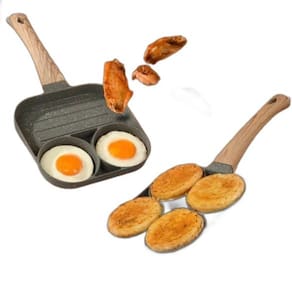 Frigideira Antiaderente 4 partes e 3 Partes Carne Ovo São dois modelos enviados aleatoriamente, mas caso deseje um modelo específico deverá haver perguntas sobre modelo e cor disponível antes da compra Características: 100% novo e de alta qualidade A superfície interna da frigideira é tratada com revestimento antiaderente, facilitando a facilidade e mais higiênica. Materiais selecionados de alta qualidade, alta resistência de temperatura, desgaste resistência e longa vida útil. Eventualmente aquecido, pode te ajudar rapidamente a fazer delicioso pequeno-almoço. Furo pendurado no cabo para armazenamento conveniente. Equipado com alça anti escalada, bom efeito de isolamento de calor, é a ferramenta de cozinha casa perfeita. Pode ser para fazer omelette, hambúrguer, Carne, a frigideira apresenta 4 ou 3 compartimentos para fazer seus pratos rápido e fácil. Compatível com todos os furos, fogão a gás, indução. Especificação: Material: Pedra baquelite+maifana Comprimento da Grelha: app. 19cm 3,54in Comprimento da Alça: app. 16,5cm 6,49in Comprimento Total: app. 34cm 13,85pol Quantidade: 1 pc 3 divisorias ou 4 divisórias do vendedor: 1 meses Marca: Não Informado