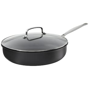 DESIGN EXCEPCIONAL Aproveite o desempenho profissional com exterior anodizado duro, distribuição de calor insuperável e antiaderente quantânio para resultados profissionais COZIMENTO PREMIUM O vazamento sem gotejamento, os lados inclinados da frigideira maximizam a superfície de cozimento. Forno até 260 graus C MANUSEIO EXCEPCIONAL As alças Cool Grip são alças sólidas rebitadas de aço inoxidável que permanecem frias na parte superior do fogão e fornecem uma aderência sólida e segura LIMPEZA Limpeza fácil com água quente e sabão e uma esponja não abrasiva