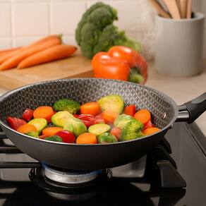 As 7 camadas de antiaderente tornam o preparo dos alimentos mais simples e a limpeza mais fácil. Formulado à base de fluoropolímeros e reforçado por partículas de cerâmica, o Ultra carrega o selo PFOA FREE, que garante a ausência de elementos nocivos à saúde em sua composição.