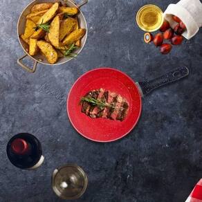 Frigideira Antiaderente em Alumínio Vermelho com Revestimento Interno 26CM Cabo em Baquelite