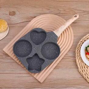 Prepare receitas práticas com a frigideira antiaderente multiuso com 4 divisórias, ideal para ovos, panquecas e outros alimentos. Seu revestimento antiaderente de alta performance ajuda a evitar que os alimentos grudem, permitindo cozinhar com pouco ou nenhum óleo. As quatro cavidades em formatos variados facilitam o preparo simultâneo de diferentes porções, mantendo cada item separado. O cabo de madeira com acabamento Soft Touch oferece conforto e segurança no manuseio durante o uso diário. Compatível com diversos tipos de fogão, é uma aliada versátil para a rotina na cozinha.