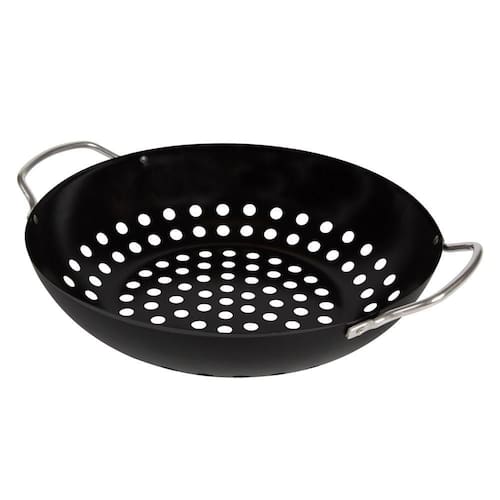 Frigideira assadeira antiaderente para grelhar churrasco Frigideira Antiaderente Para Grelhar - uso restrito em churrasqueiras Deixe seu churrasco mais prático e saboroso com a Frigideira Antiaderente para Grelhar Ideal para fazer alimentos grelhados, como legumes e frutos do mar, a frigideira possui bordas altas que facilitam na hora de mexer a comida e grelhá-la de maneira uniforme. Fácil de limpar, ela é coberta com revestimento antiaderente que também evita que os alimentos grudem no fundo da frigideira. Suas alças facilitam o manuseio e fundo com furos tornam ela para uso restrito em churrasqueiras. Adicione o tempero que faltava em seu churrasco com a Frigideira Wok Antiaderente para Grelhar.