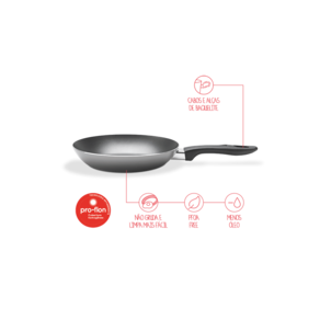 Para acompanhar as suas necessidades, a frigideira da linha Chilli está disponível em diversos tamanhos 28x4,2 cm e 1,8 litro. A estrutura de alumínio dissipa melhor o calor cozinhando o alimento por igual e mais rapidamente. Já o revestimento interno antiaderente evita que o alimento grude mesmo com uso reduzido de óleo. O material também facilita a limpeza. Sua segurança está garantida com o cabo de baquelite, que não aquece. Estão disponíveis na cor prata._x000D_
