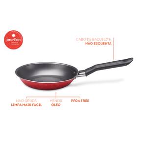 Para acompanhar as suas necessidades, a frigideira da linha Garlic está disponível no tamanho de 20x4 cm com capacidade de 0,8 litro. A estrutura de alumínio dissipa melhor o calor cozinhando o alimento por igual e mais rapidamente. Já o revestimento interno antiaderente evita que o alimento grude mesmo com uso reduzido de óleo. O material também facilita a limpeza. Sua segurança está garantida com o cabo de baquelite que não aquece. Nesta opção a cor vermelho. O ciclo de vida do produto pode variar conforme frequência e intensidade da utilização. O produto deve ser descartado (livre de materiais orgânicos) em coletores de resíduos seletivos. A logística reversa não é aplicável._x000D_