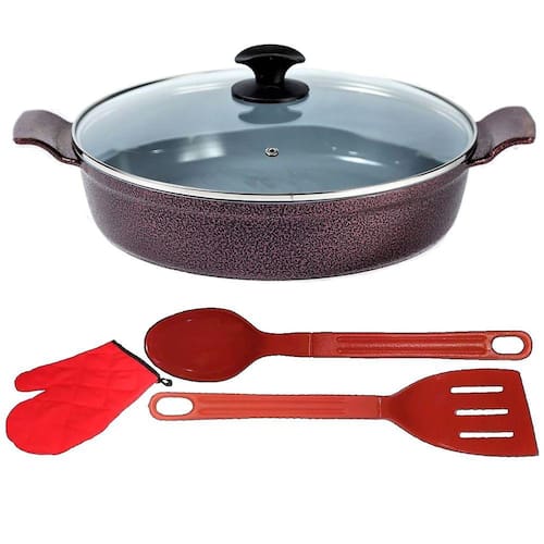 01 Frigideira Cereja Antiaderente Cerâmica Talher e Luva 03 30cm.