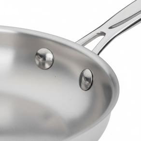 Frigideira em aço inoxidável premium com base encapsulada de alumínio para distribuição uniforme de calor. Cabo Cool Grip que permanece frio durante o uso. Borda cônica para despejo preciso. Compatível com fogões a gás, elétricos, vitrocerâmicos e indução. Pode ser utilizada no forno até 260°C. Lavável em lava-louças.Porta-fio