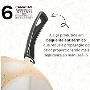O cabo ergonômico foi cuidadosamente projetado para proporcionar um manuseio confortável e seguro, permitindo que você cozinhe com confiança. Além disso, sua construção em materiais de alta qualidade garante durabilidade e desempenho excepcionais, mesmo após muitos usos.
