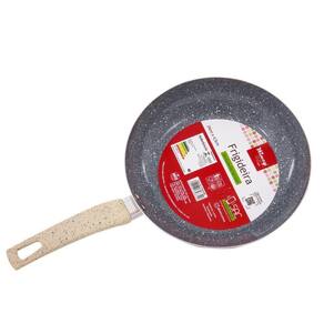 Frigideira de Alumínio Marble BegeComposta de alumínio e baquelite, o que a torna extremamente resitente e durável. Possui revestimento antiaderente, que requer menos tempo de cozimento, menos uso de óleo e é extremamente fácil de limpar. É livre de PFOA, nocivo à saúde. Lave com sabão neutro e pano ou esponja macia para uma maior durabilidade do produto. Nunca use esponja de aço. Ela arranha as partes polidas e deixa minusculas partículas que podem vir a provocar manchas. medidas:24x4.5 cm20X4 cm22x4 cm Marca: Não Informado