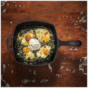 VERSATILIDADE Esta frigideira quadrada de ferro fundido CHEF 10,5 pode ser usada em um fogão, em um forno, grelha ou mesmo ao ar livre em uma fogueira. Sele, asse ou frite deliciosas refeições com esta frigideira de ferro fundido ou até mesmo use como prato de servir da cozinha à mesa. PRÉ TEMPERADO Nossa melhor frigideira de ferro fundido é pré temperada para garantir o uso diário de baixa manutenção. Simplesmente lave à mão com detergente suave, seque bem com uma toalha e esfregue a panela de ferro fundido com óleo vegetal. DISTRIBUIÇÃO IGUAL DO CALOR Esta frigideira de ferro fundido temperado de 10,5 oferece uma distribuição uniforme do calor e excelente retenção de calor para todas as suas deliciosas receitas. SUPERFÍCIE ANTI ADERENTE Mantenha nossas panelas de ferro fundido bem lubrificadas e devidamente pré aquecidas para garantir que os alimentos não grudem. Pendure convenientemente em sua cozinha com furos de alça para zenamento ideal. FRIGIDEIRA COM NELADAS Cozinhe com esta frigideira quadrada de ferro fundido com nervuras para elevar os alimentos deliciosos da gordura e do óleo. Desfrute de marcas autênticas de grelhados em vegetais e carnes e impressione seus convidados no jantar