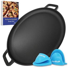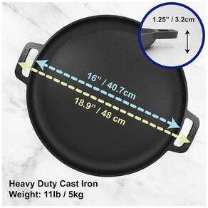 PANELA ANTI ADERENTE DE QUALIDADE PREMIUM Empregamos ferro fundido de alta qualidade e alças de silicone de primeira qualidade que garantirão a melhor experiência de fabricação de pizza de todos os tempos. Seja assando uma pizza ou servindo tudo ficará impecável com nossa grande forma de pizza de ferro fundido de 16 polegadas com alças de silicone. Fornecemos aos nossos clientes um combo matador de panela de pizza de ferro fundido grande de para assar uma pizza incrível e alças de silicone incríveis para evitar que suas mãos se queimem. FÁCIL DE LIMPAR E MANTER Uma das coisas mais cativantes sobre o nosso conjunto de panelas redondas de ferro fundido é que não há problemas quando se trata de limpá lo. Você pode lavar essas panelas com água morna e pronto. Não é necessário sabão ou máquina de lavar louça. USOS VERSÁTEIS Você não apenas pode usar nossa panela para assar uma pizza saborosa, mas também pode transformá la e usá la para assar, selar, grelhar ou fritar seus vegetais, peixes. Pode ser tanto no interior como no exterior, ou seja, para acampar, etc. Também pode ser facilmente utilizado na grelha ou no forno Marca: Não Informado