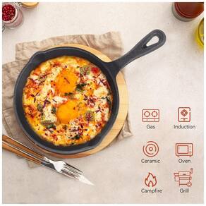 ESCOLHA SAUDÁVEL O ferro fundido é notoriamente mais do que outros materiais antiaderentes, não se preocupe com a queda do revestimento e sem PFOA. Z GRILLS usa material de excelente qualidade em frigideiras de fundição para retenção de calor superior, cozimento uniforme, resistência à ferrugem e certificado pela FDA FÁCIL DE LIMPAR E MANTER Pré temperado com óleo para deixá lo pronto para uso direto, o tempero contínuo resultará em uma panela segura, saudável e praticamente antiaderente. Basta enxaguar com água após o uso, recomenda se lavar as mãos para preservar o antiaderente VERSATILIDADE DE COZINHA A panela de ferro fundido pode fritar, assar, grelhar e refogar carnes, legumes e muito mais Compatível com todos os cooktops, incluindo indução e forno até 500 F ESPECIFICAÇÃO Diâmetro , Profundidade , Peso 640 g Marca: Não Informado