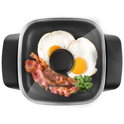 Aumente sua capacidade na cozinha sem precisar de reformas. Uma das opções mais versáteis e convenientes para sua cozinha é a Frigideira Elétrica Elite Gourmet. Prepare refeições completas em minutos, sele carnes antes de cozinhá-las e faça ovos em grande quantidade para sua família. A limpeza é fácil, já que a frigideira é totalmente imersível. Projetada para fácil uso e durabilidade, essa frigideira elétrica de 20 x 20 cm possui um seletor de temperatura variável de 93 a 204 graus Celsius, além de luz indicadora de energia. Com laterais altas de 5 cm e uma tampa de vidro, evita respingos enquanto você monitora o cozimento. Prepare refeições sem aquecer toda a cozinha, tornando-se um acessório econômico. Nossa frigideira elétrica de 600 watts é certificada pela ETL. Adquira já a sua e aumente a capacidade de preparo de sua cozinha. Trave sabores e umidade com a tampa de vidro temperado transparente. As dimensões da panela de 20 x 20 x 5 cm permitem fritar frango e preparar massas. A superfície antiaderente libera rapidamente os alimentos para uma limpeza rápida e sem complicações. Simplifique o tempo das refeições com nossa frigideira elétrica perfeitamente dimensionada. Desfrute de panquecas fofas, sanduíches gourmet e legumes refogados saborosos. Pode ser lavada na lava-louças para uma limpeza rápida e fácil. Corpo de alumínio fundido resistente com acabamento em preto que evita ferrugem ou deformação. Testada quanto à segurança, a frigideira elétrica de 600 watts e 110 volts listada pela ETL é ideal para uso doméstico, apresentando botão e alças com toque frio. Um presente essencial e atencioso para casa nova ou casamento.
