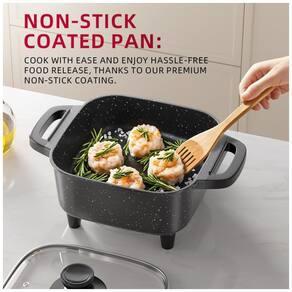 Com dimensões de 29,7 x 20 x 10,4 cm, esta pequena frigideira é perfeita para espaços pequenos, sendo uma escolha excelente para dormitórios, apartamentos ou para cozinhar em movimento. Projetada para versatilidade, permite fritar, ferver ou cozinhar suas refeições favoritas com facilidade, ideal para quem mora sozinho e para preparo rápido de refeições. Desfrute de uma culinária sem complicações e limpeza fácil com uma superfície antiaderente premium que evita que os alimentos grudem, poupando tempo na cozinha. Basta limpar a frigideira após o uso, graças à sua superfície lisa e durável, perfeita para estilos de vida agitados ou para quem está começando a cozinhar. Especificamente projetada para uso individual, esta frigideira traz conveniência e funcionalidade para estudantes, solteiros e qualquer pessoa que precise de uma solução de cozimento confiável e que economize espaço.