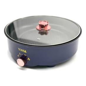Panela elétrica multiuso com 3 níveis de temperatura, potência de 600W, revestimento antiaderente, tampa de vidro com saída de vapor e função de segurança contra queima a seco.Lâmpada piloto
