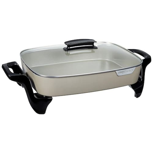Transforme suas refeições com a Frigideira Elétrica Presto em Cerâmica, projetada para oferecer versatilidade e praticidade na sua cozinha. Seja para fritar, assar, guisar ou preparar deliciosas caçarolas, esta frigideira é perfeita para todas as suas necessidades culinárias.