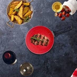 Especificação: - Material: Alumínio Revestido e Baquelite - Medida: 24cm x 05cm - Antiaderente - Cabo de Baquelite - REGISTRO INMETRO: 011069/2024 - Formato: Redonda - Peso: 590 gramas - Cor: Vermelho