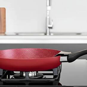 Especificação: - Material: Alumínio Revestido e Baquelite - Medida: 28cm x 05cm - Antiaderente - Cabo de Baquelite - REGISTRO INMETRO: 011069/2024 - Formato: Redonda - Peso: 760 gramas - Cor: Vermelho