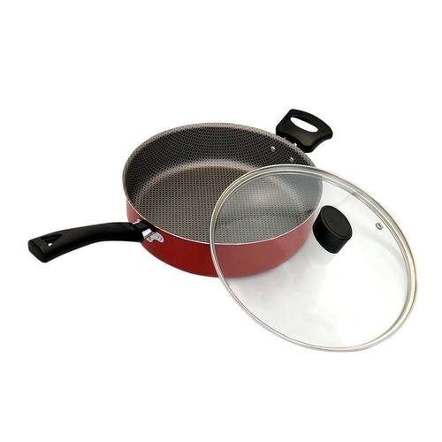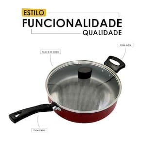 Frigideira enjoy reta 20cm com tampa de vidro Frigideira enjoy reta 20cm com tampa de vidro - vermelha com seu design inovador e funcional, a frigideira proporciona uma distribuição de calor uniforme, permitindo que você cozinhe seus alimentos de maneira eficiente e precisa, seja fritando, grelhando ou salteando, você terá o controle total do processo para alcançar resultados perfeitos a cada refeição.A tampa de vidro transparente permite que você acompanhe o progresso de cozimento sem precisar abrir a frigideira, mantendo o calor e a umidade ideais para pratos deliciosos. Além disso, o vidro resistente é fácil de limpar e suporta temperaturas elevadas, tornando a frigideira versátil e durável.Com uma superfície antiaderente de alta qualidade, você poderá cozinhar com menos óleo, proporcionando refeições mais saudáveis e reduzindo a aderência dos alimentos. -não esquentar a panela vazia-cozinhar com fogo médio ou baixo -usar somente utensílios de plástico ou madeira especificações:material:liga de alumínio antiaderentedimensões: comprimento: 23cm x alt.:7,5cm x diâmetro: 32cm x larg.: 20cm peso: aprox. 600g contém:01 frigideira enjoy reta 20cm com tampa de vidro - vermelha Ean: 7897103805211