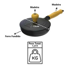 01 Frigideira Fast Egg Cabo Madeira e Tampa Ferro Fundido 15cm.