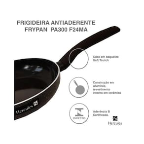 Frigideira fogão indução revestimento ceramico preta 18x4,5cm hercules pa300-f18ma Referência: pa300-f18ma Revesitimento cerâmico Uso em todos os tipos de fogões, inclusive indução Não queima, não gruda, não necessita de nenhum de tipo de gordura ou óleo para fritar ou cozinha Alimentação saúdável Diâmetro 18 cm Capacidade 1 litro Nos dias de hoje, cozinhar tem se tornado um hobbie divertido e adorado pelas pessoas. Nada melhor do que reunir a familia ou os amigos e cozinhar um belo prato É claro que para isso precisamos estar preparados para cada ocasião e tipo de alimento. Sendo assim vale muito a pena conferir a frigideira hercules pa300-pa300-f18ma soft touch marron. É uma frigideira feita de alumínio com 18cm de diâmetro e revestimento antiaderente cerâmico, que dispensa o uso de óleo na hora de preparar os alimentos, contribuindo para o preparo de alimentos mais saudáveis, além de facilitar na hora da limpeza