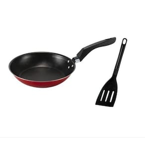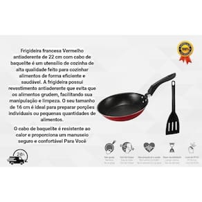 Frigideira francesa 22 cm antiaderente teflon com espatula cor vermelha com grafite Frigideira 22 cm antiaderente teflon feita de de alumínio revestido com 5 camadas de Teflon. O cabo feito de baquelite é uma opção comum, pois esse material é resistente ao calor e não conduz a temperatura para a mão do usuário. Marca: Heraa