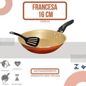 Frigideira francesa antiaderente Teflon 16cm cor cereja gold Bem-vindo à Magazine Hera, onde a magia da culinária ganha vida através de nossas panelas de alta qualidade Frigideira Francesa 16 cm com 5 camadas de Teflon Antiaderente + Espátula Nylon