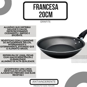Frigideira Francesa Antiaderente Teflon 20 Cm Cor Preta Frigideira Francesa Na Cor Preta oferece alto desempenho, sustentabilidade é excelente padrão de qualidade. Corpo de alumínio com acabamento interno e externo com Antiaderente de alta performance com 5 camadas. O alimento não gruda Marca: Heraa