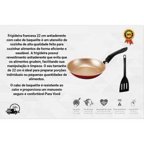 Frigideira Francesa Antiaderente Teflon 22 Cm Cor Cereja e Dourado