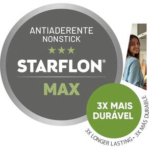A frigideira tem 28 cm de diâmetro e capacidade de 4,9 litros, ideal para preparar porções maiores. O corpo de alumínio com espessura de 1,6 mm proporciona um aquecimento rápido, permitindo que você economize tempo e energia. O revestimento antiaderente Starflon Max não só evita que os alimentos grudem, mas também é | fácil de limpar e durável |. Além disso, é livre de PFOA, garantindo que você cozinhe de maneira | saudável e segura |.