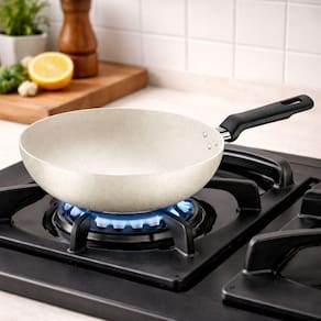 A frigideira funda Tramontina Loreto em alumínio com revestimento interno e externo em antiaderente Starflon Max bege 24 centímetros 2,2 litros foi desenvolvida para atender preparos mais robustos com maior controle. O formato fundo amplia as possibilidades de uso, enquanto o corpo em alumínio contribui para uma resposta térmica eficiente. O revestimento antiaderente Starflon Max auxilia no manuseio dos alimentos e na limpeza, e o cabo em baquelite antitérmico oferece estabilidade e conforto durante o preparo. Uma solução funcional para o uso frequente na cozinha.
