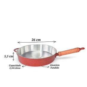 Frigideira Fundida Alumínio Batido Grosso Com Tampa 26cm Vermelho