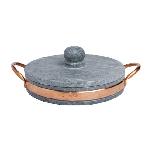 A frigideira gourmet com tampa em pedra sabão e alça em cobre é ideal para quem busca preparar refeições cheias de sabor com um visual sofisticado e funcional ao mesmo tempo. A pedra sabão distribui o calor de forma uniforme e mantém a temperatura por muito mais tempo, permitindo preparar carnes, legumes, ovos, massas e diversos pratos sem queimar ou ressecar, além de levar a frigideira direto do fogão para a mesa com elegância. A tampa ajuda a conservar o calor e o sabor dos alimentos, deixando o preparo mais eficiente e econômico. As alças em cobre garantem firmeza no manuseio e dão um acabamento rústico e refinado que valoriza qualquer cozinha ou área gourmet. Muito utilizada em casas, restaurantes e espaços gastronômicos, essa frigideira une durabilidade, praticidade e beleza, sendo perfeita para quem gosta de cozinhar com qualidade e servir com estilo.