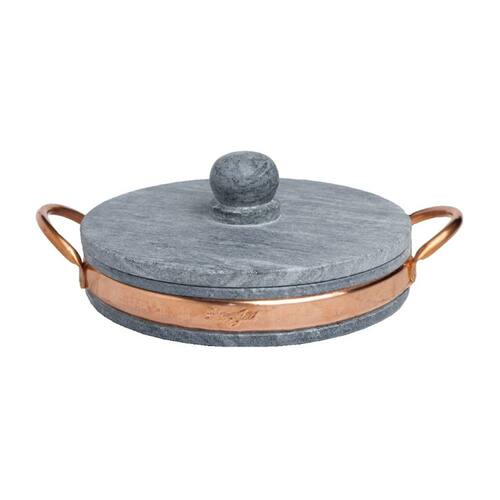 Frigideira Gourmet com Tampa Pedra Sabão Alça Cobre 22x4cm