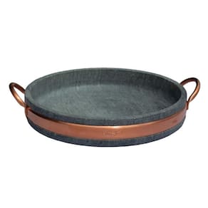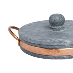 Frigideira gourmet em pedra sabão com tampa e alça em cobre. Ideal para preparar diversos pratos, levando do fogão para a mesa. Distribui o calor uniformemente e mantém a temperatura por mais tempo. Alças em cobre para firmeza no manuseio. Durável, prática e com acabamento rústico e refinado.Vendido por PANELA DE FERRO FUNDIDO e entregue por Casas Bahia