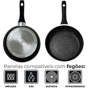 Equipada com fundo de indução, é compatível com todos os tipos de fogão: indução, gás, elétrico e vitrocerâmico. O revestimento antiaderente de alta qualidade evita que os alimentos grudem, facilitando o preparo e a limpeza, além de permitir o uso de menos óleo para refeições mais saudáveis.