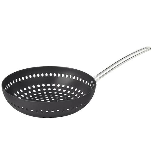 Frigideira Grelha Wok Furada Tramontina para Churrasco 26,5cm Alumínio Anodizado Aço Inox Grafite.