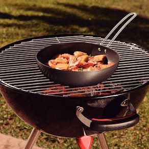 Se você gosta de preparar aquele delicioso churrasco e proporcionar aos seus convidados os mais variados tipos de acompanhamentos, a wok Churrasco Tramontina 2,2 litros é a escolha certa! A wok para grelhar é perfeita para preparar molhos, risotos, marinados, legumes grelhados e o indispensável pão de alho, pois pode ser colocada em sua churrasqueira, apenas deve-se ter cuidado para não entrar em contato com o carvão ou com as brasas. Com a frigideira wok Tramontina, os acompanhamentos do churrasco estarão garantidos!