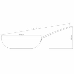 Garantia: 90 dias / Peso: 580g / Cor predominante: preto / Ref: 7891112279087; Dimensões: 42,7cm (C) x 24,5cm (L) x 14,1cm (A); Capacidade: 2,2 litros; Materiais: alumínio anodizado e aço inox; Conteúdo: 1 panela wok para churrasqueira.