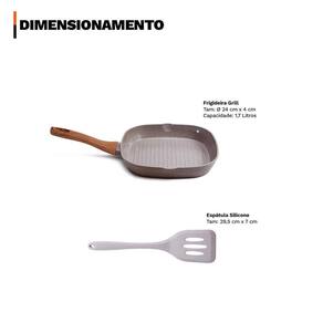 Distribuído por feheros shop Kit frigideira grill quadrada 24cm revestimento cerâmico antiaderente indução com espátula vazada silicone premium 29,5cm Atenção Este kit é a escolha ideal para quem busca preparar grelhados, carnes e legumes com praticidade, segurança e eficiência. Composto por uma frigideira grill quadrada de 24cm com revestimento cerâmico antiaderente e uma espátula vazada de silicone premium de 29,5cm, o conjunto proporciona uma experiência culinária completa, preservando o sabor e a integridade dos alimentos. O revestimento cerâmico da frigideira oferece uma superfície antiaderente mais saudável, livre de pfoa e ptfe, que facilita o preparo sem deixar os alimentos grudarem. A espátula em silicone rígido é perfeita para mexer, servir e manipular os alimentos sem arranhar ou danificar o revestimento da frigideira. Compatível com todos os tipos de fogão, incluindo indução, este kit alia eficiência térmica, conforto no manuseio e durabilidade, tornando-se indispensável para o dia a dia na cozinha. Informações do produto A frigideira grill possui design quadrado com sulcos internos que simulam o efeito da grelha, garantindo selagem perfeita e deixando os alimentos mais saborosos e visualmente atrativos. Seu cabo em baquelite com revestimento soft touch oferece segurança e conforto, pois não aquece durante o uso. A espátula vazada de silicone foi desenvolvida para resistir a altas temperaturas, proporcionando um manuseio firme e ergonômico. É fácil de limpar, não absorve odores e pode ser lavada na máquina de lavar louças, garantindo praticidade e higiene. Especificações técnicas do produto - segurança: frigideira com revestimento cerâmico livre de pfoa e ptfe e espátula em silicone que não risca o antiaderente. - alta resistência: materiais de alta qualidade que suportam altas temperaturas sem deformar. - cozimento eficiente: design quadrado com sulcos que selam e grelham os alimentos com uniformidade. - conforto: cabos ergonômicos e resistentes ao calor, oferecendo firmeza no manuseio. - fácil limpeza: espátula lavável na máquina de lavar louças e frigideira de limpeza simples com esponja macia. Ficha técnica do produto Frigideira grill quadrada - largura: 24cm x 24cm - altura: 4cm - capacidade: 1,7 litros - peso: 600g - material: alumínio com revestimento cerâmico Espátula vazada - comprimento: 29,5cm - largura: 7cm - peso: 110g - material: silicone Antes do primeiro uso - lave a frigideira e a espátula com esponja macia e detergente neutro para remover resíduos de fabricação - seque completamente com pano seco - na frigideira, aplique uma fina camada de óleo vegetal no interior, aqueça por 2 minutos em fogo baixo, deixe esfriar, lave novamente e seque antes de usar - caso deseje, pode untar a espátula com uma pequena quantidade de óleo para garantir uma maior durabilidade. Após o uso - deixe os itens esfriarem naturalmente antes de lavar para evitar choques térmicos - lave com esponja macia e sabão neutro - não utilize utensílios metálicos ou produtos abrasivos para não danificar o revestimento - a espátula pode ser lavada à mão ou na máquina de lavar louças sem perder sua resistência Itens inclusos no pacote - 01 frigideira grill quadrada 24cm revestimento cerâmico antiaderente indução - 01 espátula vazada silicone 29,5cm premium resistente Todas as fotos são reais dos produtos. Qualquer dúvida estamos à disposição. Dúvidas frequentes 01 - o produto é novo Possui 03 - como posso acompanhar o envio Você poderá acompanhar o envio do seu pedido por meio do código de rastreamento fornecido após a confirmação do envio.