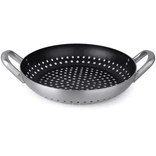 Faça alimentos muito mais saudáveis, com a Frigideira Grill. Desenvolvida para grelhar carnes e legumes. O revestimento antiaderente garante fácil limpeza.O revestimento recebe o selo PFOA Free, o que garante a você a certeza de levar para casa produtos de alta qualidade e sem riscos à sua saúde. Para preservar a aparência e a performance do produto, utilize utensílios de madeira, nylon, bambu ou silicone. Cor: Alumínio Material: Alumínio Medidas: 42cm Comp. X 10,2cm Alt. X 32,2cm Larg. Peso: 0,76kg
