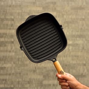 A Frigideira Grill Quadrada da Panela Mineira é um produto moderno, prático e eficiente, que apresenta alto desempenho no preparo de diversas receitas. Sua marca registrada são as ondulações em seu fundo, que permitem o escoamento da gordura da peça que está sendo cozida. Possui um design autêntico e elegante, com fundo reto e bordas alongadas, o que a torna excelente para grelhar, fritar, cozinhar e servir. Muito utilizada em bares e restaurantes pela sua apresentação e por manter-se quente por muito mais tempo.