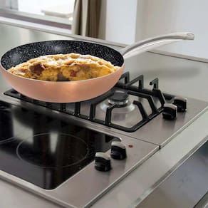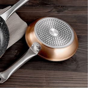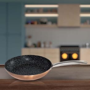 - Marca: Bergner - Modelo: BG-30566-CP - Material: Alumínio Forjado - Cabo de Aço Inoxidável - Base difusora adequada para todos os tipos de fogões - Revestimento interior antiaderente Marble+ com efeito mármore (camada antiaderente em mármore com desempenho endurecido, o que permite uma limpeza de forma pratica e eficiente). - Resistente ao uso doméstico e pesado - Ideal para cozimento médio e longo prazo. - Excelente conservação e distribuição de calor, o que economiza energia - A lavagem à mão é mais recomendada, para maior durabilidade - Limpeza fácil - Dimensões: 24x4,5cm - Cor: Cobre Ean: 6941349511816