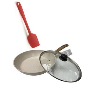 Frigideira Indução ceramico 22 cm Marmore - espatula e tampa Linda frigideira de 22cm na cor marmore mais uma espatula de silicone e tampa de vidro Pode trabalhar com ela em fogões a gas, eletrico, lenha, vitroceramico e indução