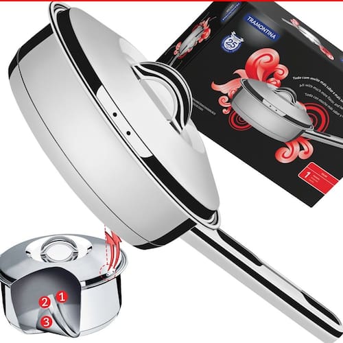 Com a Frigideira Tramontina em Aço Inox com Fundo Triplo e Tampa 24 cm, suas receitas ganham um toque de excelência e seus momentos na cozinha se tornam verdadeiras experiências gastronômicas memoráveis.