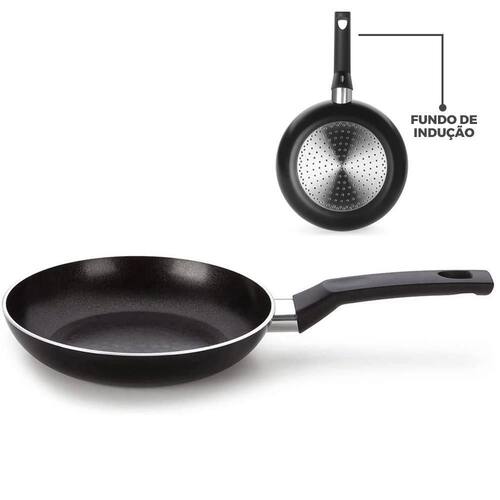 Frigideira Induct+ Multiflon 26cm Antiaderente Preto - 44026Com design exclusivo e tecnologia própria orgulhosamente brasileira, a linha induct+ conta com o fundo especial em inox que permite o uso em qualquer tipo de fogão, sendo ideal para os fogões de indução.IMAGENS MERAMENTE ILUSTRATIVASEspecificações Técnicas:Modelo: 44026Material: alumínioMaterial do cabo: baqueliteCor: pretoDiâmetro: 26cmEspessura: 4mmCapacidade: 2,4 litrosDescrição do Produto:Todas as peças contam com maior espessura e o antiaderente Quartzo com 7 camadas, exclusivo dos produtos Multiflon.O revestimento Quartzo traz como diferencial a sua extrema resistência e durabilidade, formulado por partículas de cerâmica extra dura.Os antiaderentes Multiflon carrega o selo PFOA FREE, que garante a ausência de elementos nocivos à saúde em sua composição.Recomendações de uso e cuidado:Antes do primeiro uso, lave bem e unte o interior com óleo de cozinha, aqueça em fogo baixo por dois minutos, deixe esfriar e lavar novamente.Nunca use utensílios de metal ou objetos pontiagudos.Cozinhe em fogo baixo ou médio.Não superaqueça a panela ou deixe que as chamas se estendam para as laterais da panela superaquecendo os cabos.Evite mudanças bruscas de temperatura.Sempre deixe a panela esfriar antes de lavar.Limpeza o revestimento antiaderente garante fácil limpeza com apenas água morna e detergente neutro.Não use produtos de limpeza abrasivos.Dimensões do Produto:Altura: 7cmLargura: 27cmComprimento: 43cmGarantia: 12 meses pelo fabricante. Marca: Não Informado
