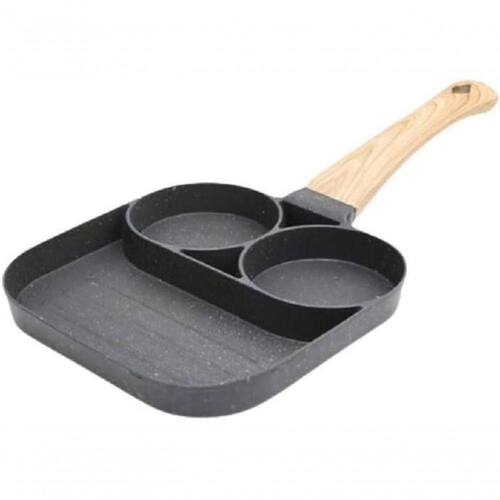 - Linha: Frigideira antiaderente com três divisórias circulares.
